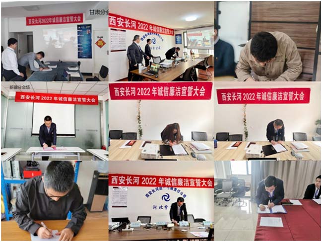 誠(chéng)信廉潔建設(shè)對(duì)企業(yè)至關(guān)重要,是公司健康發(fā)展的重要基石。為促使管理干部帶頭建設(shè)廉潔自律、誠(chéng)信正直的企業(yè)文化,3月26日,公司組織召開(kāi)2022年誠(chéng)信廉潔宣誓大會(huì)。本次會(huì)議因疫情影響,采取線(xiàn)上線(xiàn)下、陜西主會(huì)場(chǎng)與北京、山東、河北、甘肅、新疆、湖北、云南等分會(huì)場(chǎng)相結(jié)合的形式召開(kāi),公司領(lǐng)導(dǎo)、部門(mén)中層及以上管理干部等約150人參會(huì)。